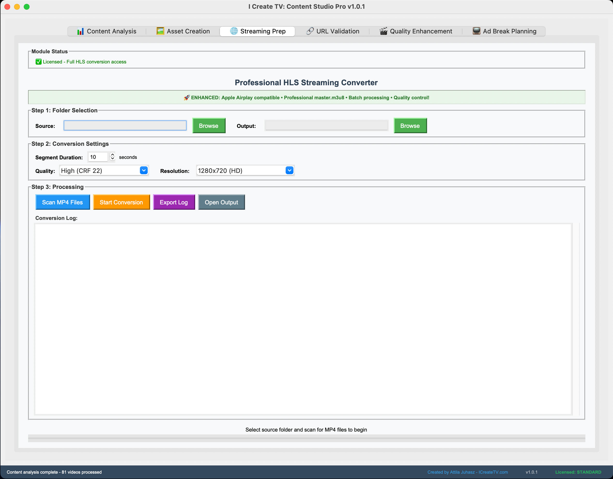 - Converts MP4 videos (SD and HD) to HLS for FAST and other OTT