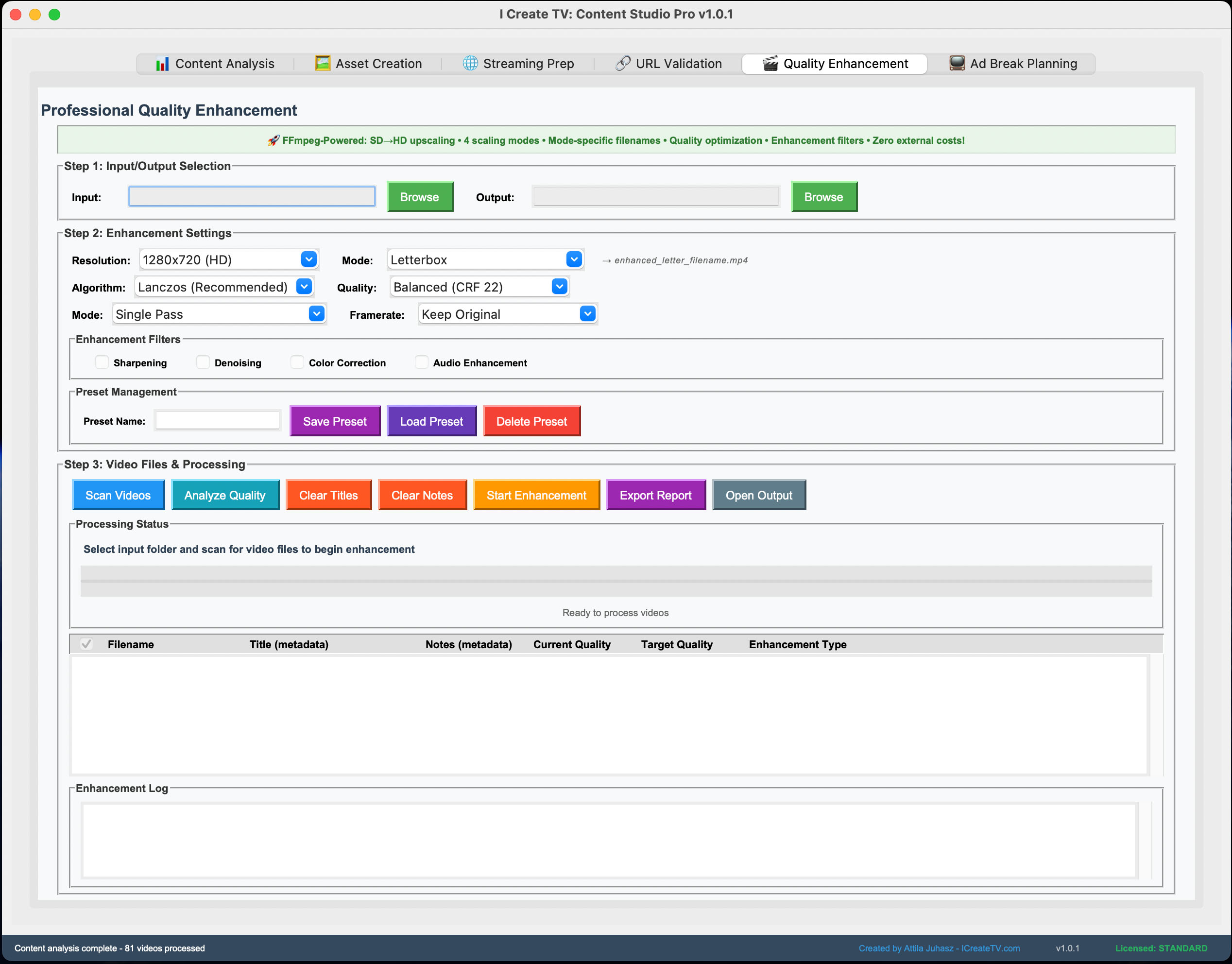 - Enhance SD to HD video (letterboxed, cropped or stretched)